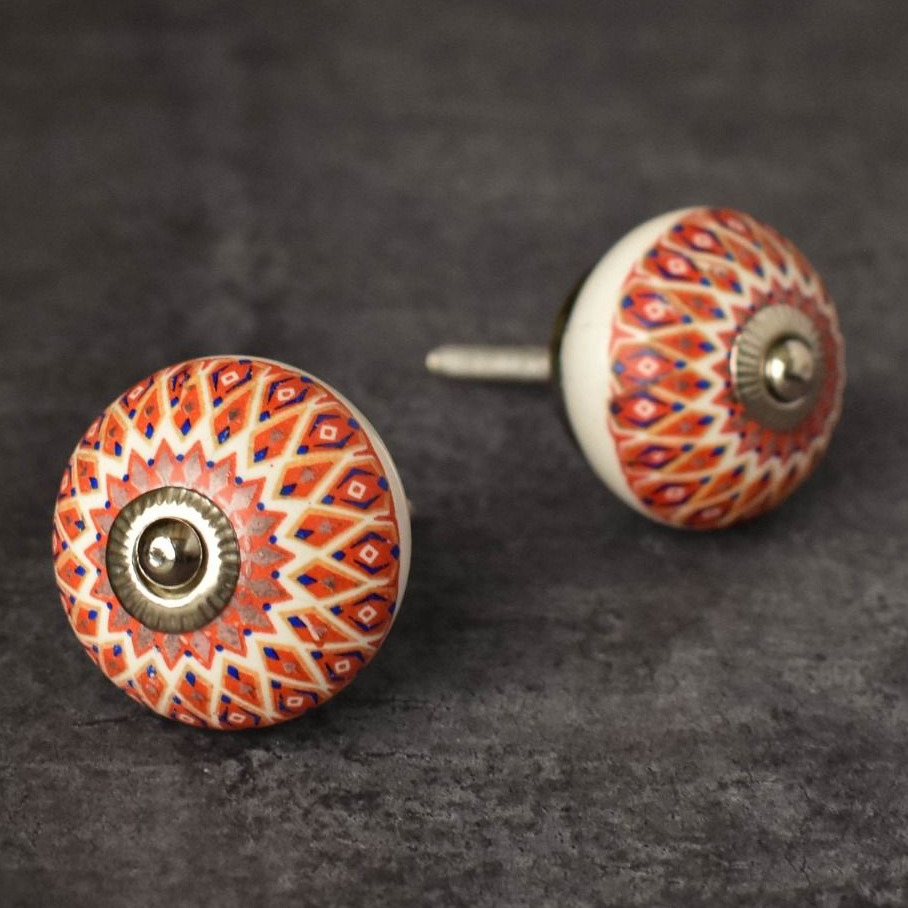 Puxador cerâmica tribal vermelho