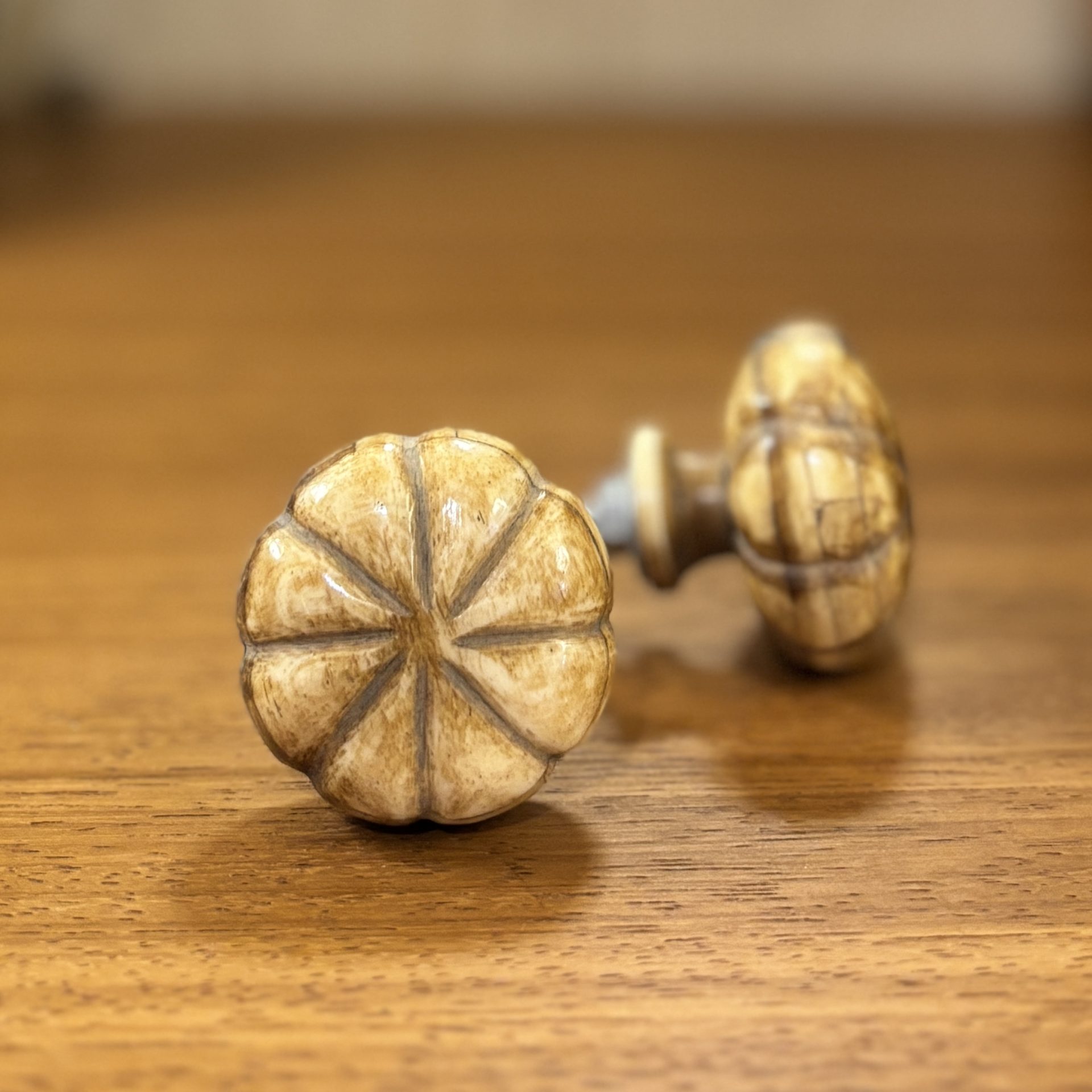 Puxador rústico em resina modelo gomos, tons beje/castanho