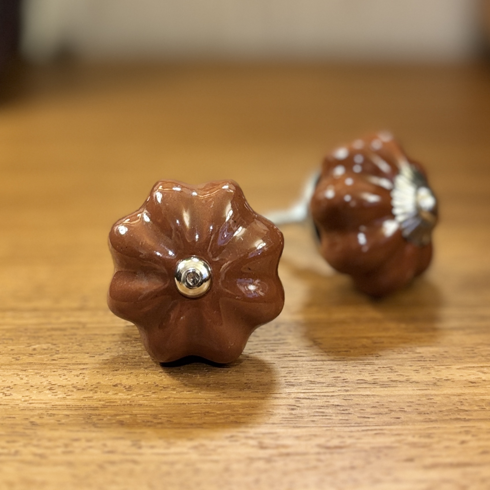 Puxador gomos cerâmica castanho